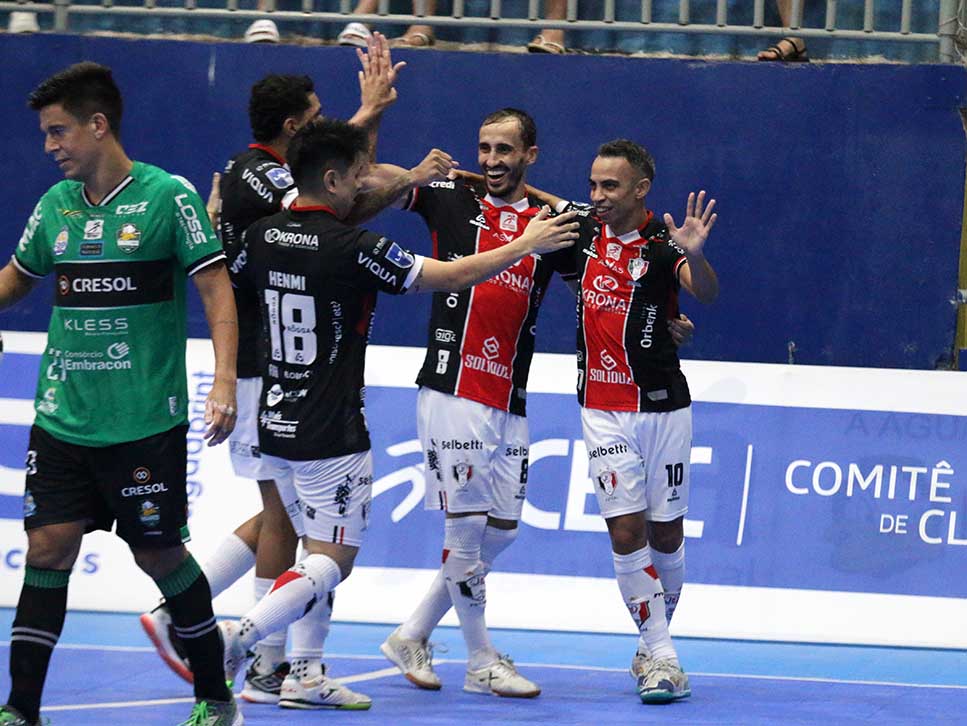 Depois de seis dias em viagem para dois compromissos, o JEC/Krona encerrou o caminho entre Rio Grande do Sul e Paraná com duas vitórias. Na noite desta sexta-feira (3), no ginásio Arrudão, em Francisco Beltrão, venceu o Marreco por 6×0. Os gols foram marcados por Rufino, Kevin, Piheiro, Pedro Rei, Fernando e Luisinho. Com a vitória, o JEC chegou aos seis pontos na classificação.