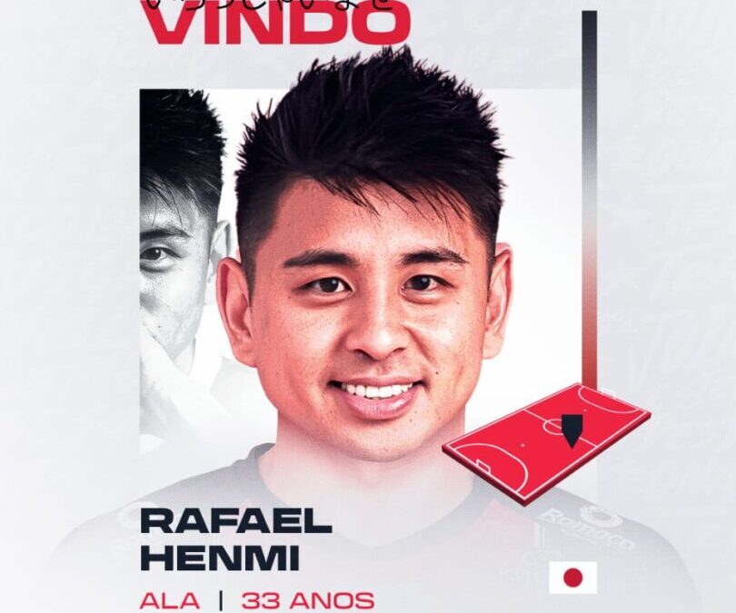 O JEC/Krona Futsal reforça mais uma vez seu elenco e anuncia a contratação de Rafael Henmi, de 33 anos, atleta que estava no Braga, de Portugal. Henmi é japonês, da cidade de Shizuoka, filhos de pais brasileiros, e ainda com nacionalidade portuguesa com nove temporadas no Benfica e três no Braga. Ele inclusive já atuou com Fernando e Robinho, atletas do atual elenco.